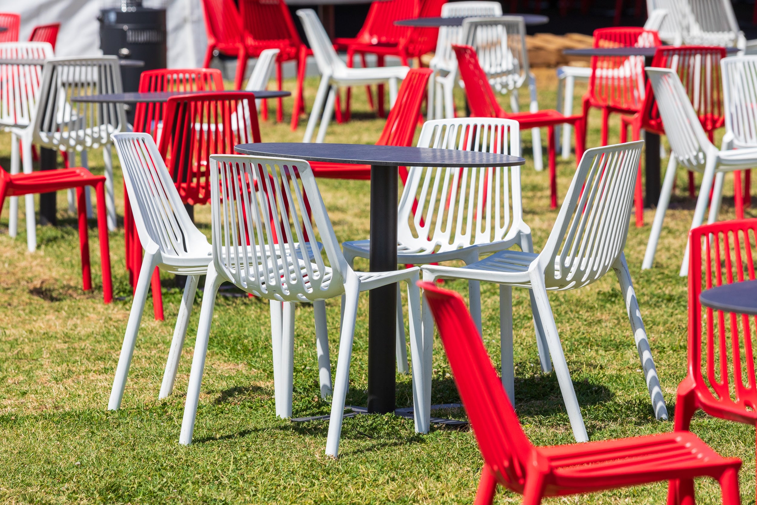 Our Astro chair is a simple yet stylish outdoor chair that is a suitable choice for alfresco event areas. Unique cut outs in the seat create strong visual effects by catching light and shadow.
