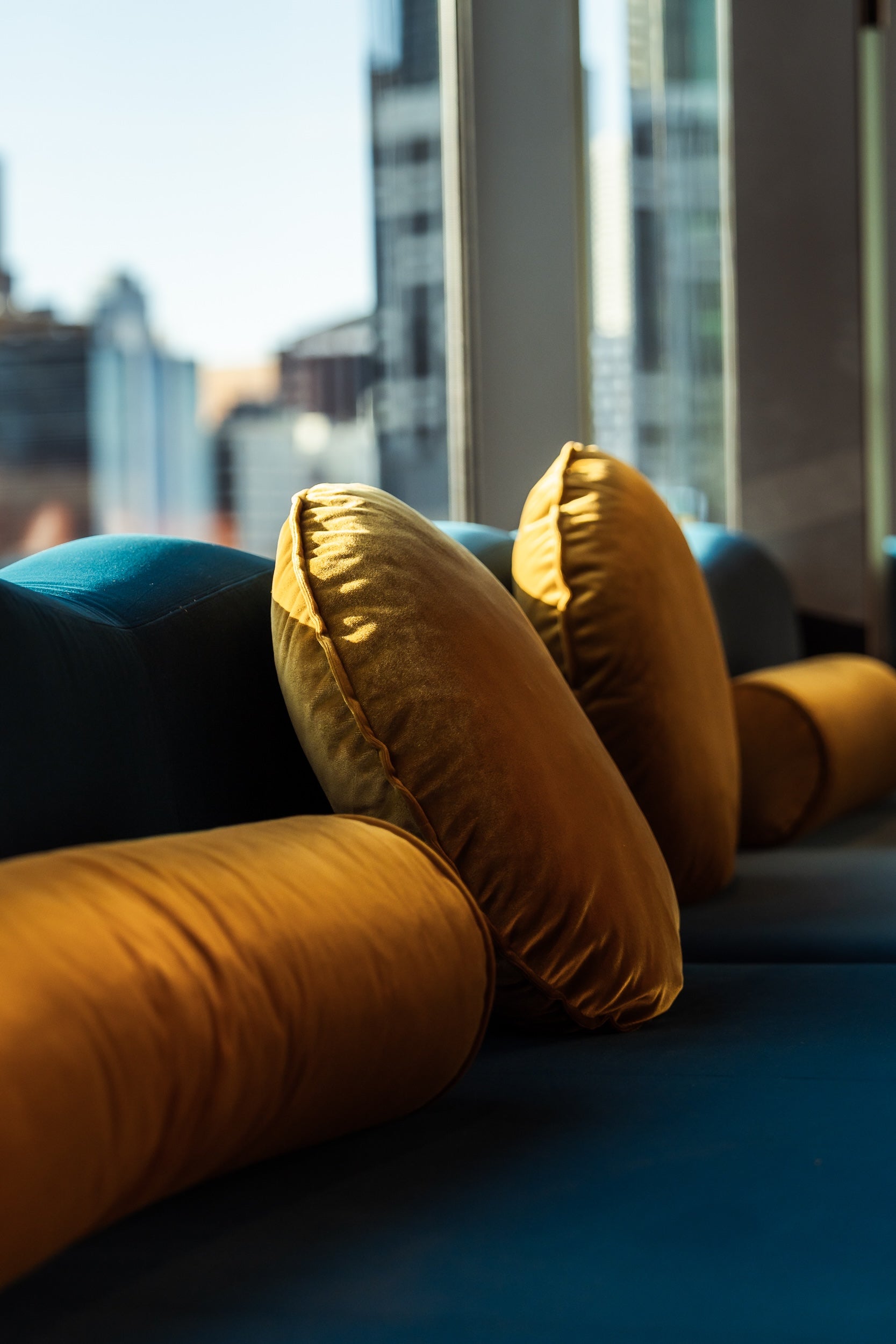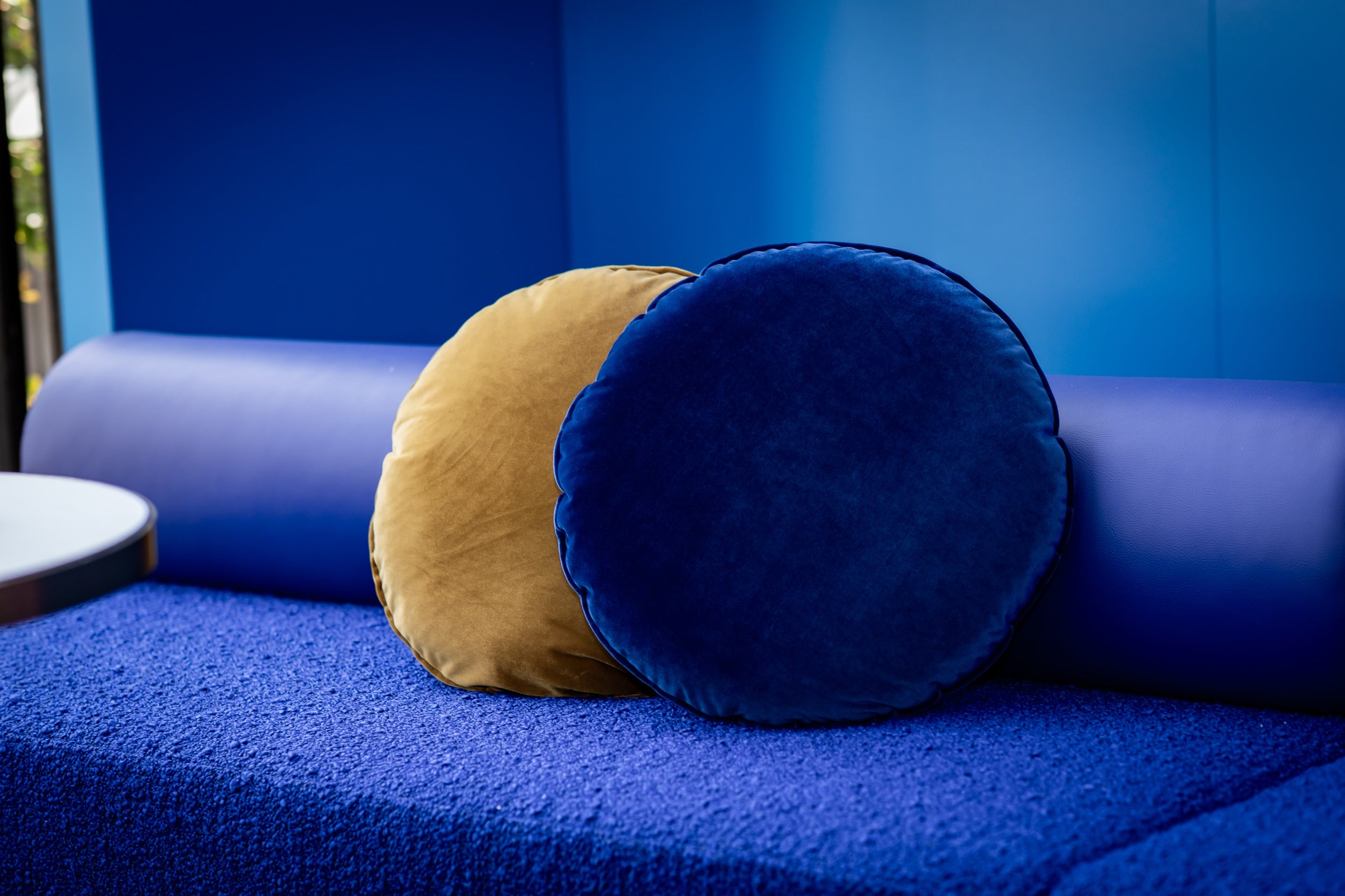 Sensual and sophisticated, this luxe cushion collection in round, bolster and square shape celebrates nostalgic 1920s elegance in seven emboldened jewel tone velvets hues including Chartreuse, Lavender, Midnight Plum, and Cobalt Blue.