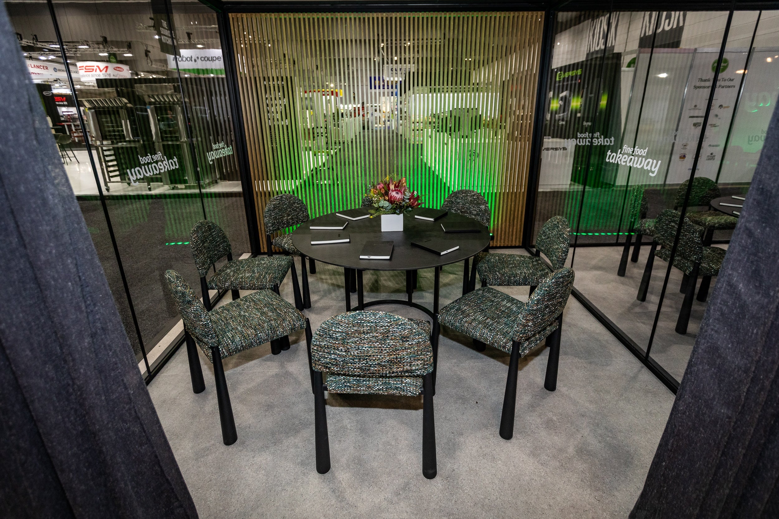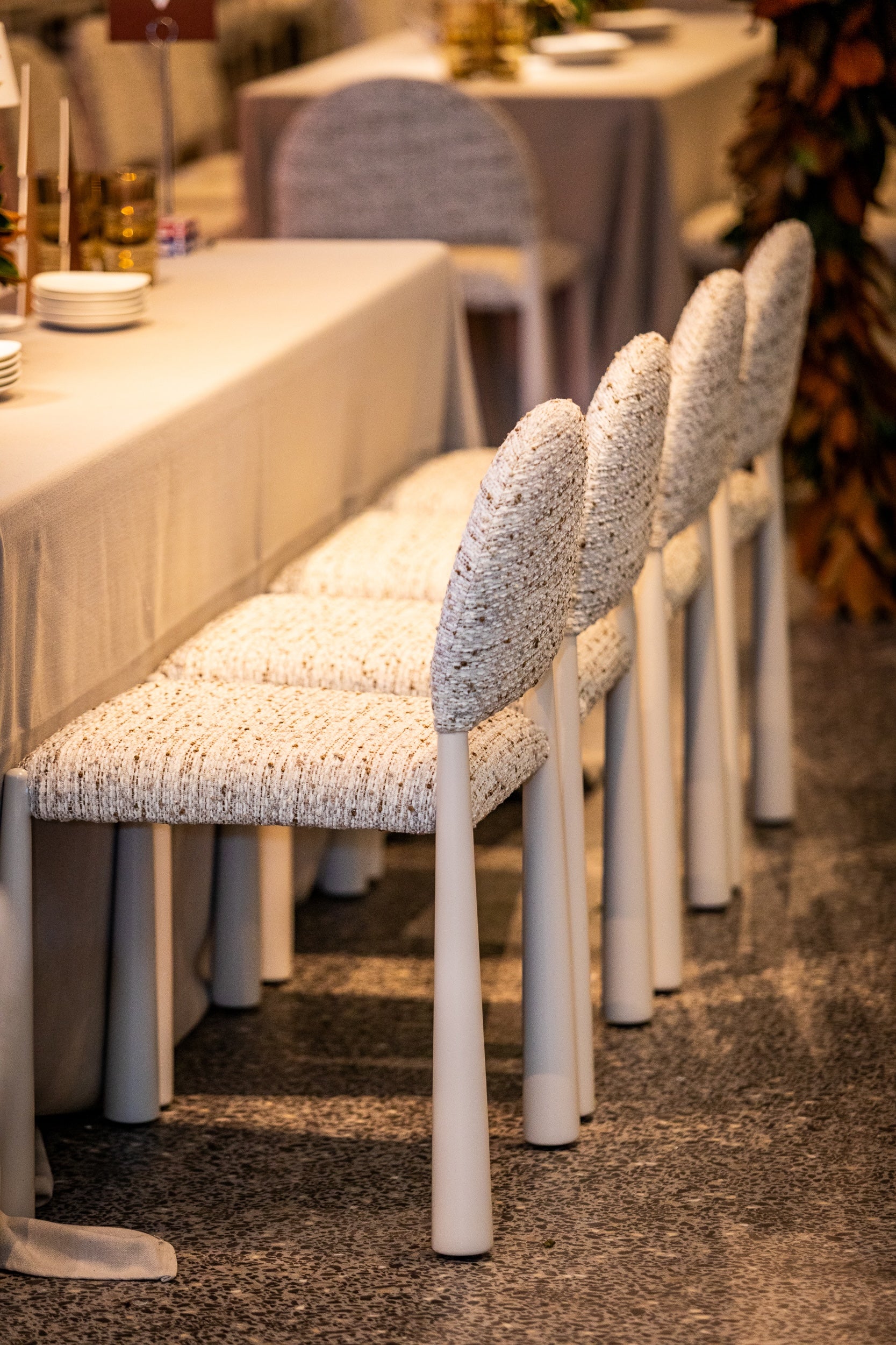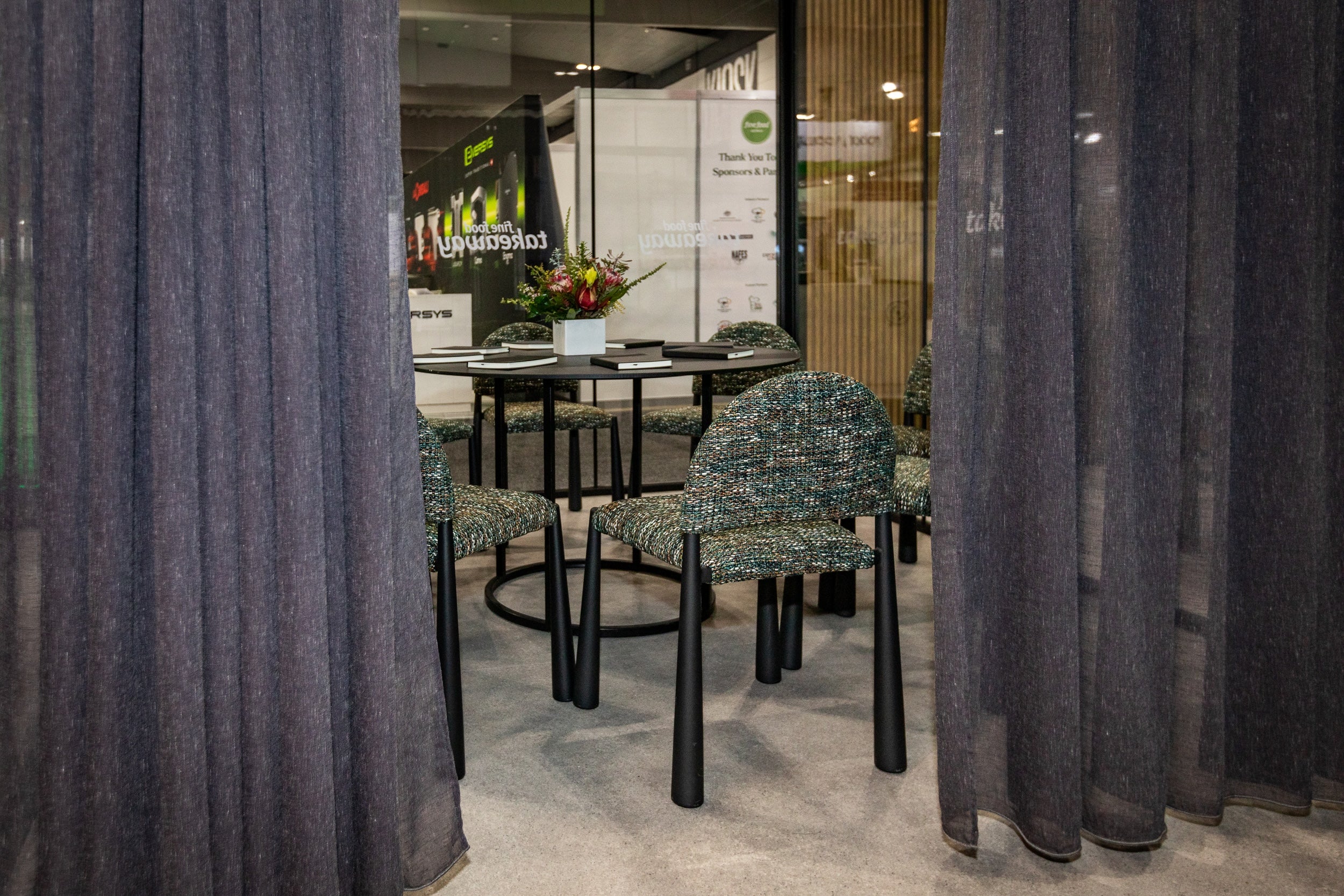 Emboldened, textural and stimulating, this retro seating collection with tapered timber leg frame and Italian tweed-like upholstery exudes warmth and flair in any setting. Jasper is available in three variegated colourways including pepper, nougat and pine.