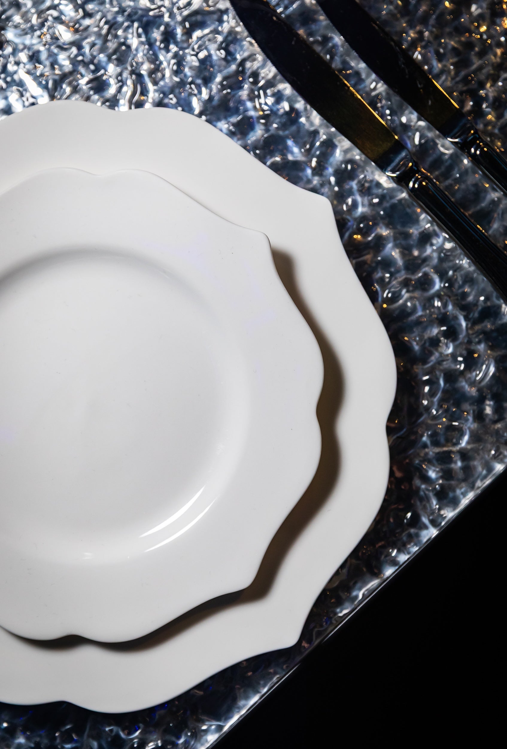 Soft peaks circumvent this nostalgic porcelain crockery collection, providing layered detail and interest to enhance your classic tablescape.