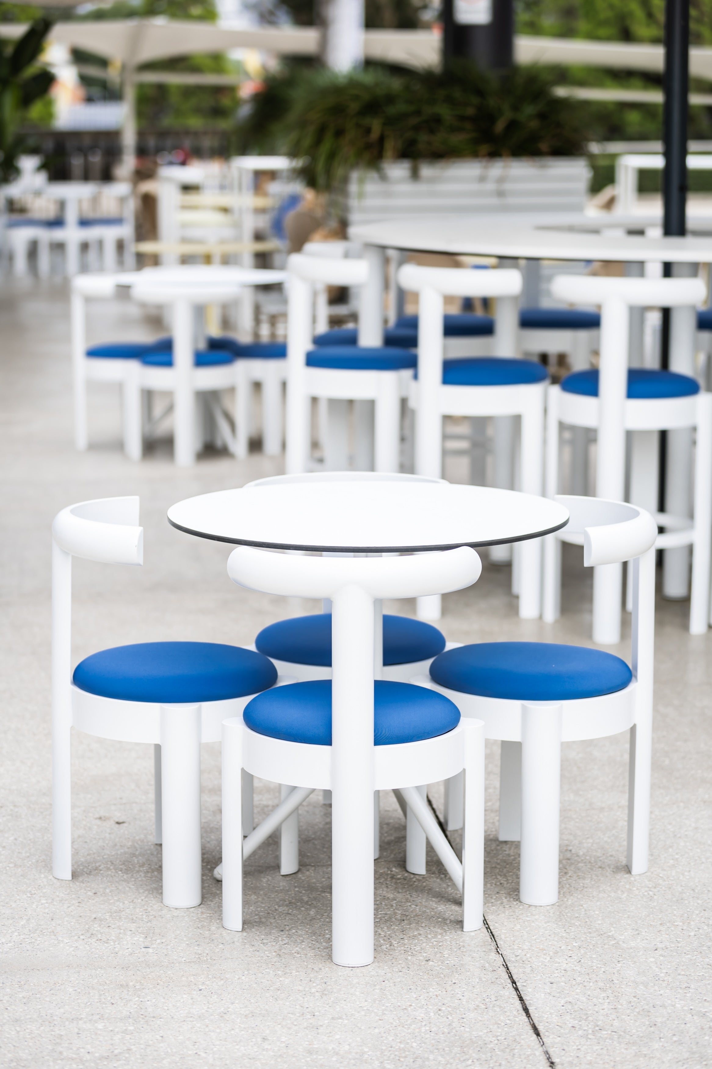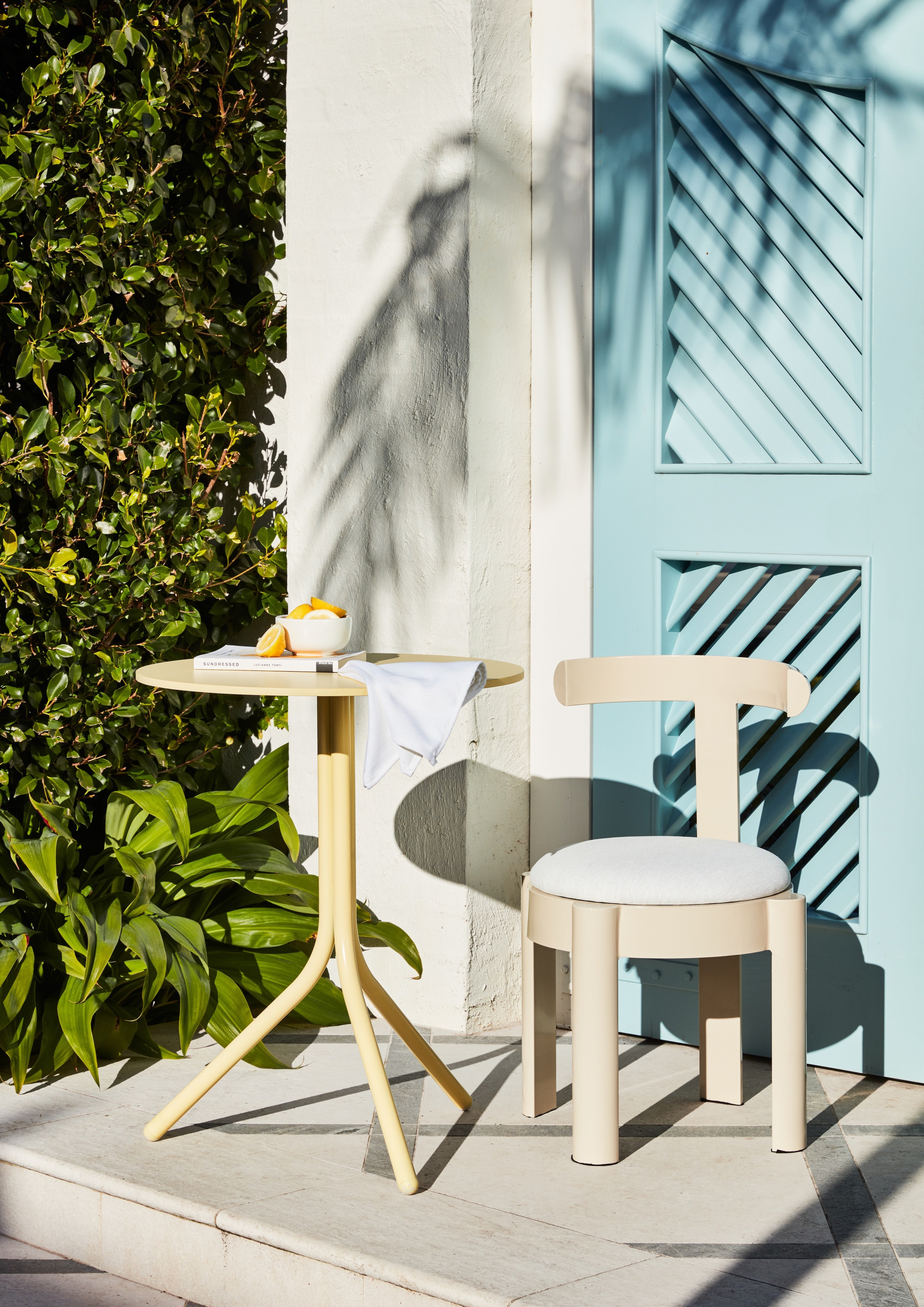 A sculptured T-shaped frame available in four glossy powder coat finishes and six interchangeable textured cushions give the progressive Sunday seating collection the versatility to transcend alfresco spaces to complement any indoor and outdoor setting.