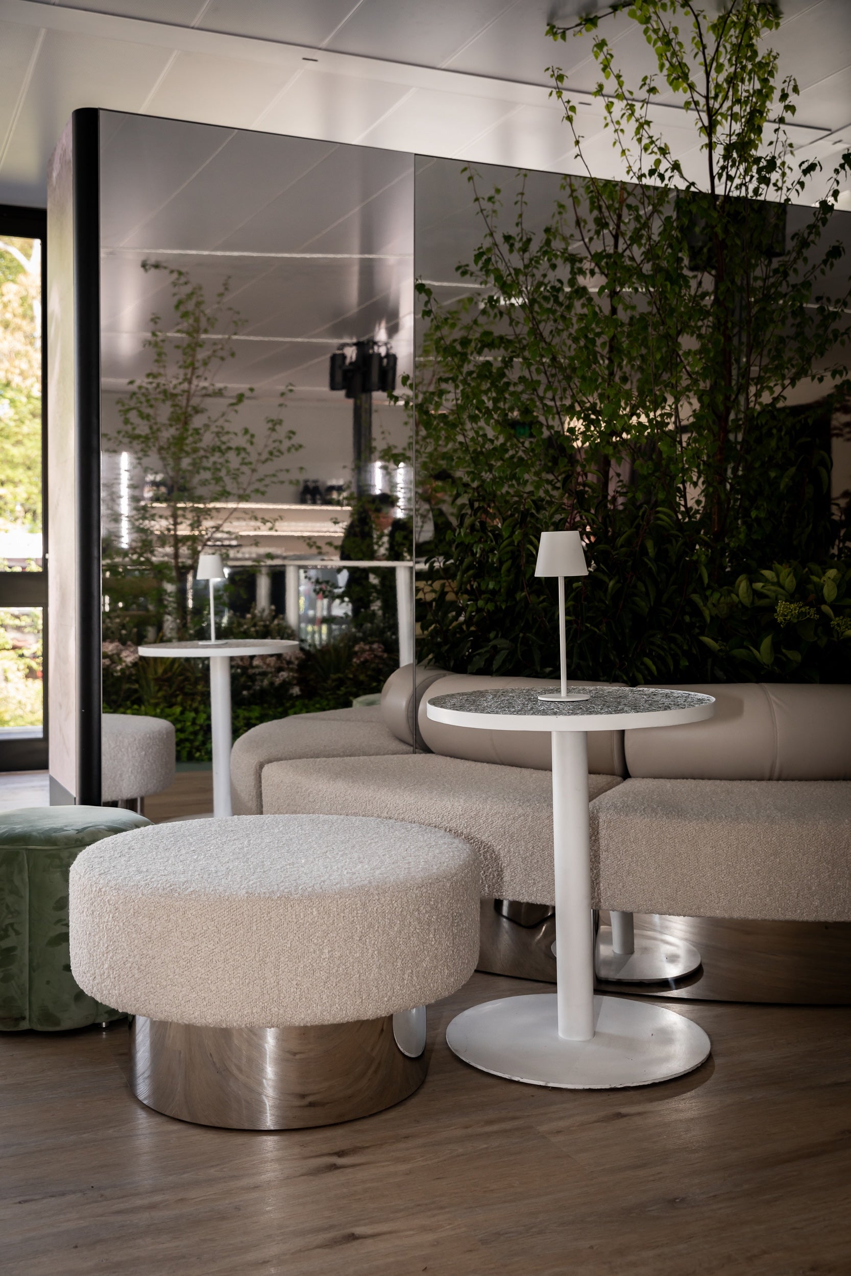 Accent your event with Zeon round and square ottomans in luxuriously tactile and contrasting textured fabrics including Oatmeal and Jet Black